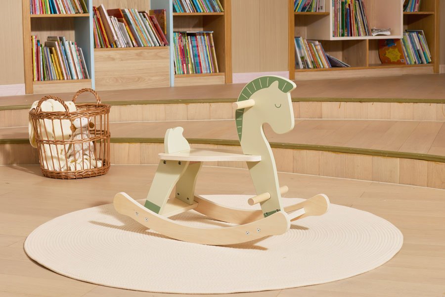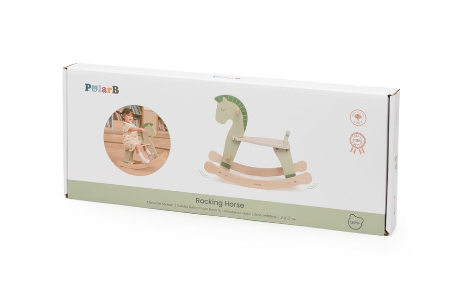 Дървеното конче за яздене и люлеене PolarB – класическа дървена играчка от висок клас е създадена за баланс, забавление и развитие на двигателните умения. Това дървено конче за яздене е изработено от масивно, гладко обработено дърво и е боядисано с безопасни бои на водна основа, характерни за серията PolarB на VIGA Toys. Нежният пастелен дизайн в зелени тонове се вписва прекрасно във всяка детска стая и предразполага към спокойна, креативна и безопасна игра у дома.