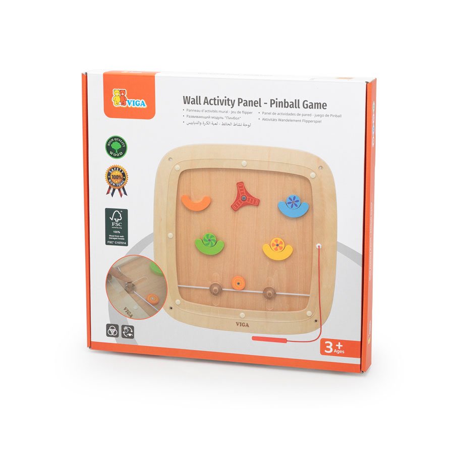 Превърнете стената в любима зона за игра! Стенният активити панел Pinball Game от VIGA Toys представлява дървена игра тип пинбол, която развива фина моторика, концентрация и координация по забавен и ангажиращ начин.