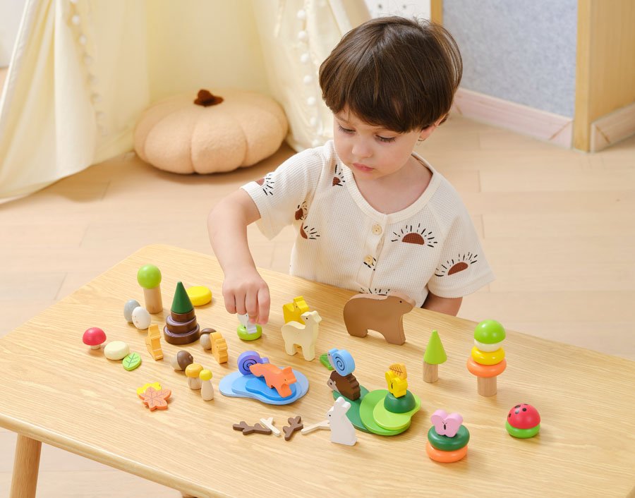Сензорни блокчета „Горски приказки“ са вдъхновена от природата играчка с отворен край, създадена да насърчава детското въображение, сензорното изследване и свободната творческа игра.