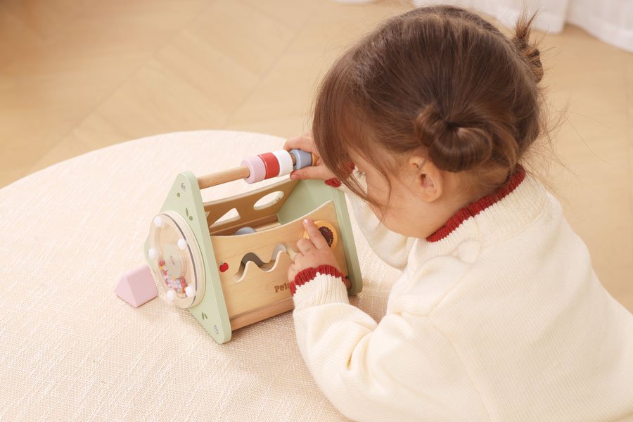 Дървеният образователен триъгълник PolarB е многофункционална играчка, която съчетава няколко различни активности в един занимателен триъгълник с активности, създаден специално за любопитните малки изследователи. Този дървен образователен център – триъгълник предлага разнообразни занимания, които стимулират фината моторика, логическото мислене, координацията и сетивното възприятие на детето.