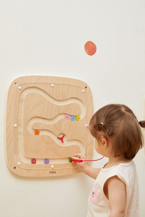 Дървен стенен магнитен лабиринт – Образователен панел VIGA Toys