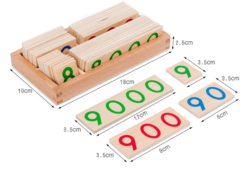 - Девет плочки с числата от 1000 до 9000 с големина 12х3.5 см.
