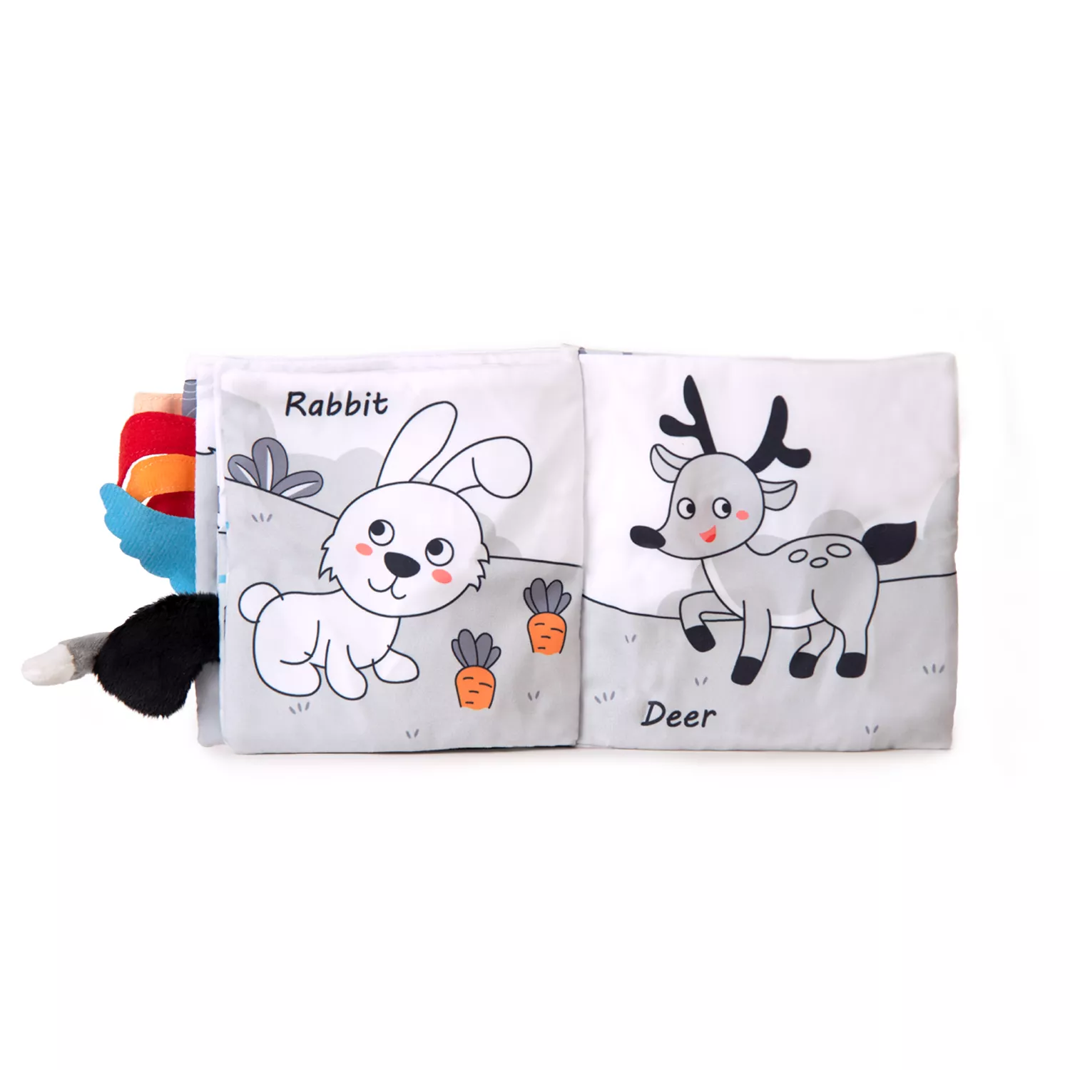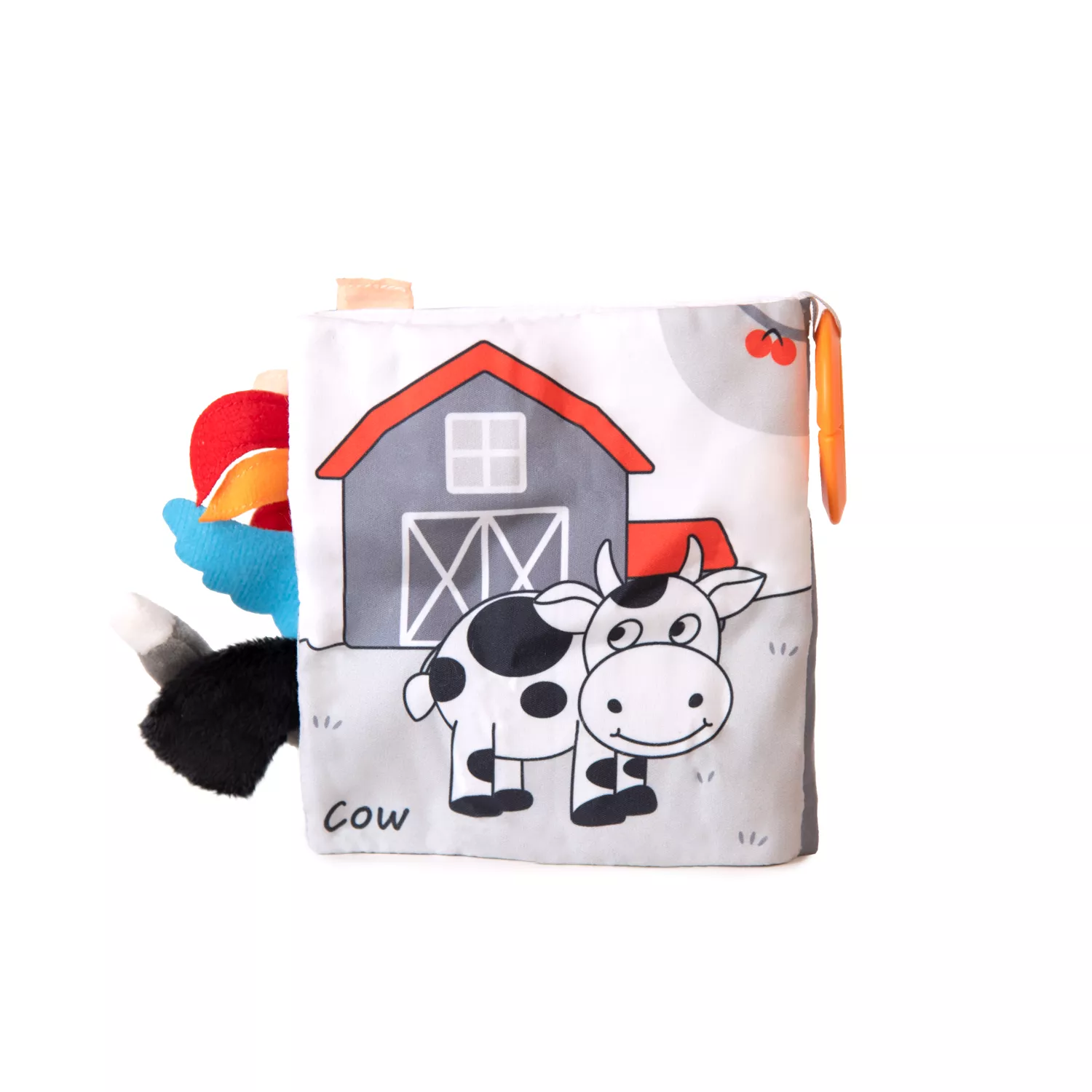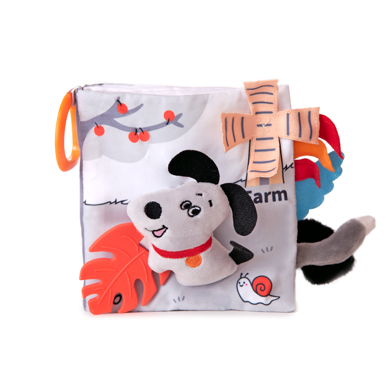 Книжката включва и релефен гризалка аксесоар, който подпомага облекчаването на венците при никнене на зъбки. Благодарение на практичната халка, може лесно да се закачи за количка, столче за кола или легло, така че да е винаги под ръка.
