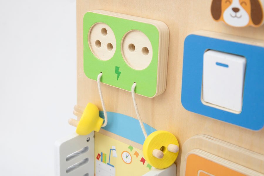 Като Монтесори бизиборд, къщата предлага разнообразие от активности, които подпомагат развитието на фината моторика, развитието на логическото мислене и уменията за решаване на задачи. Чрез въртене, плъзгане, заключване и превключване детето упражнява прецизни движения и усъвършенства координацията око–ръка.