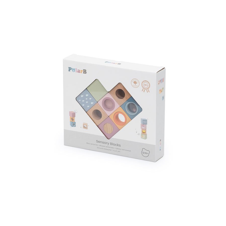 Дървени Монтесори кубчета за сензорна игра – PolarB са комплект от 8 образователни кубчета с различни сензорни ефекти, които стимулират ранното детско развитие. Подходящи за игра, сортиране, подреждане и наблюдение – идеални за развиване на сетивата, фината моторика и концентрацията.